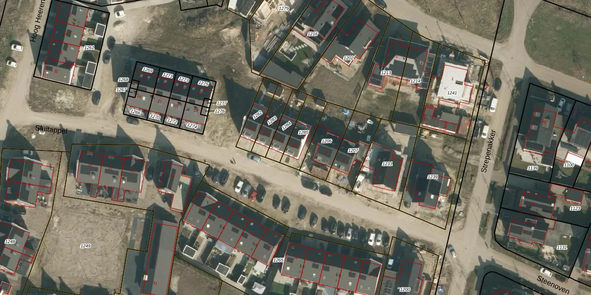 Het perceel waarop Sluitappel 10 staat heeft een oppervlakte van 180 m². Dit is een middelgroot perceel. De perceeloppervlakte wordt geregistreerd door het Kadaster. Gedetailleerde informatie over de maten van dit perceel kunt u vinden in het rapport Kadastrale kaart met maatvoering van Sluitappel 10.