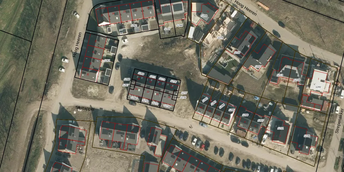 Het perceel waarop Sluitappel 32 staat heeft een oppervlakte van 68 m². Dit is een klein perceel. De perceeloppervlakte wordt geregistreerd door het Kadaster. Gedetailleerde informatie over de maten van dit perceel kunt u vinden in het rapport Kadastrale kaart met maatvoering van Sluitappel 32.