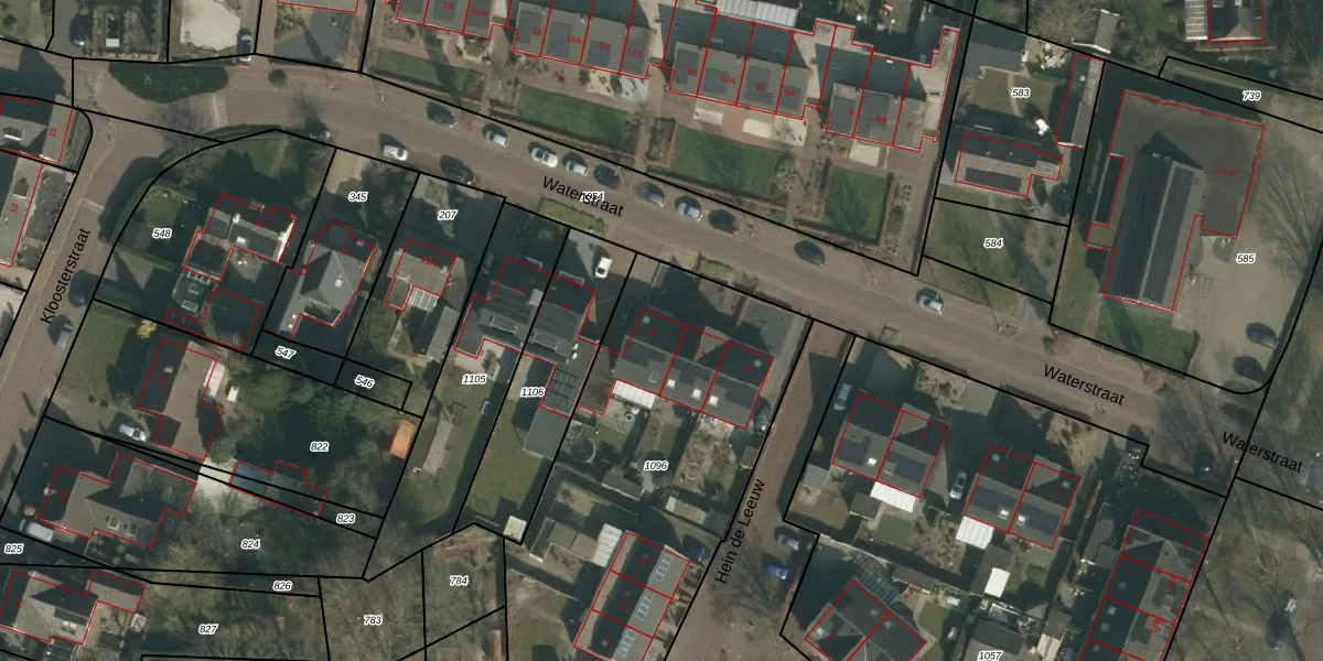 Het perceel waarop Waterstraat 13 staat heeft een oppervlakte van 2665 m². Dit is een zeer groot perceel. De perceeloppervlakte wordt geregistreerd door het Kadaster. Gedetailleerde informatie over de maten van dit perceel kunt u vinden in het rapport Kadastrale kaart met maatvoering van Waterstraat 13.