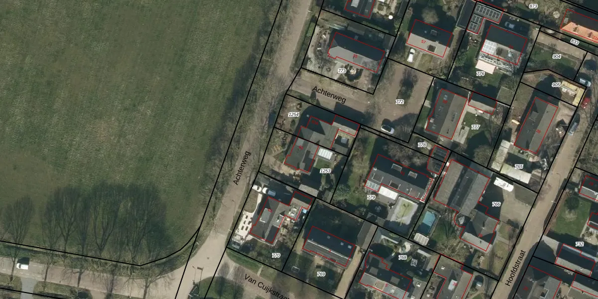 Het perceel waarop Achterweg 63 staat heeft een oppervlakte van 431 m². Dit is een groot perceel. De perceeloppervlakte wordt geregistreerd door het Kadaster. Gedetailleerde informatie over de maten van dit perceel kunt u vinden in het rapport Kadastrale kaart met maatvoering van Achterweg 63.
