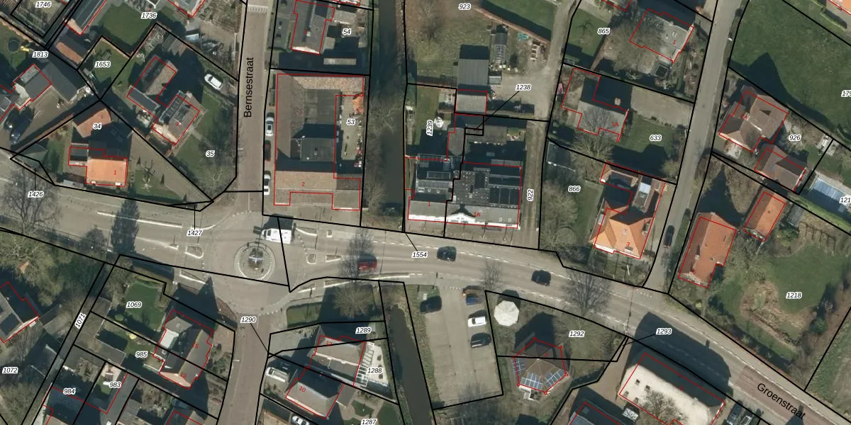 Het perceel waarop Groenstraat 1 staat heeft een oppervlakte van 447 m². Dit is een groot perceel. De perceeloppervlakte wordt geregistreerd door het Kadaster. Gedetailleerde informatie over de maten van dit perceel kunt u vinden in het rapport Kadastrale kaart met maatvoering van Groenstraat 1.
