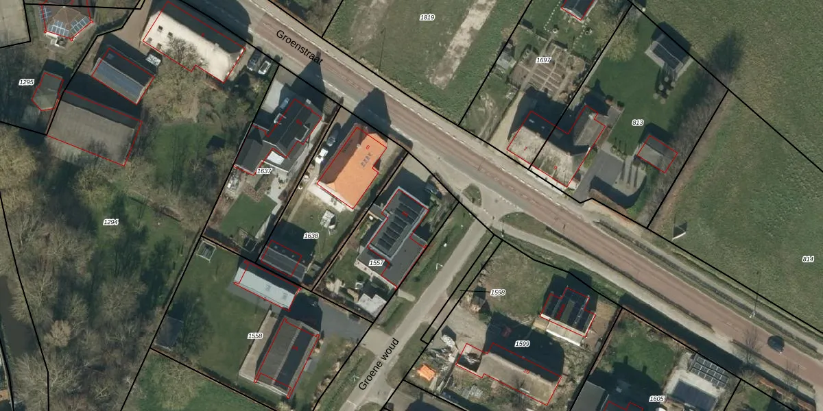 Het perceel waarop Groenstraat 8-A staat heeft een oppervlakte van 645 m². Dit is een groot perceel. De perceeloppervlakte wordt geregistreerd door het Kadaster. Gedetailleerde informatie over de maten van dit perceel kunt u vinden in het rapport Kadastrale kaart met maatvoering van Groenstraat 8-A.