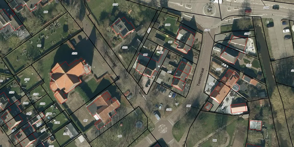 Het perceel waarop Torenstraat 5 staat heeft een oppervlakte van 285 m². Dit is een middelgroot perceel. De perceeloppervlakte wordt geregistreerd door het Kadaster. Gedetailleerde informatie over de maten van dit perceel kunt u vinden in het rapport Kadastrale kaart met maatvoering van Torenstraat 5.