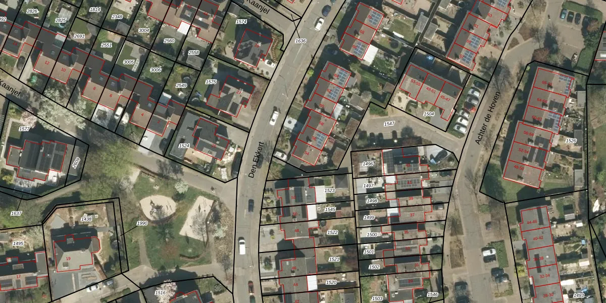 Het perceel waarop Den Ekkert 54 staat heeft een oppervlakte van 3786 m². Dit is een zeer groot perceel. De perceeloppervlakte wordt geregistreerd door het Kadaster. Gedetailleerde informatie over de maten van dit perceel kunt u vinden in het rapport Kadastrale kaart met maatvoering van Den Ekkert 54.