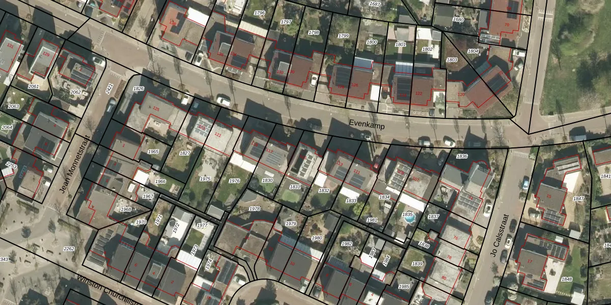 Het perceel waarop Evenkamp 115 staat heeft een oppervlakte van 246 m². Dit is een middelgroot perceel. De perceeloppervlakte wordt geregistreerd door het Kadaster. Gedetailleerde informatie over de maten van dit perceel kunt u vinden in het rapport Kadastrale kaart met maatvoering van Evenkamp 115.