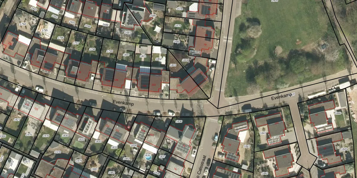 Het perceel waarop Evenkamp 120 staat heeft een oppervlakte van 327 m². Dit is een groot perceel. De perceeloppervlakte wordt geregistreerd door het Kadaster. Gedetailleerde informatie over de maten van dit perceel kunt u vinden in het rapport Kadastrale kaart met maatvoering van Evenkamp 120.