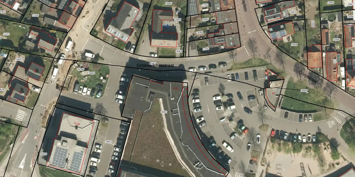 Het perceel waarop Groene Kruisstraat 20 staat heeft een oppervlakte van 3236 m². Dit is een zeer groot perceel. De perceeloppervlakte wordt geregistreerd door het Kadaster. Gedetailleerde informatie over de maten van dit perceel kunt u vinden in het rapport Kadastrale kaart met maatvoering van Groene Kruisstraat 20.