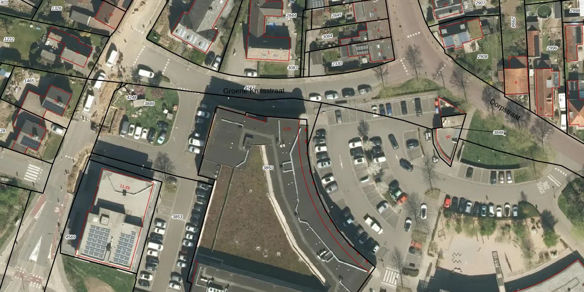 Het perceel waarop Groene Kruisstraat 22 staat heeft een oppervlakte van 3236 m². Dit is een zeer groot perceel. De perceeloppervlakte wordt geregistreerd door het Kadaster. Gedetailleerde informatie over de maten van dit perceel kunt u vinden in het rapport Kadastrale kaart met maatvoering van Groene Kruisstraat 22.