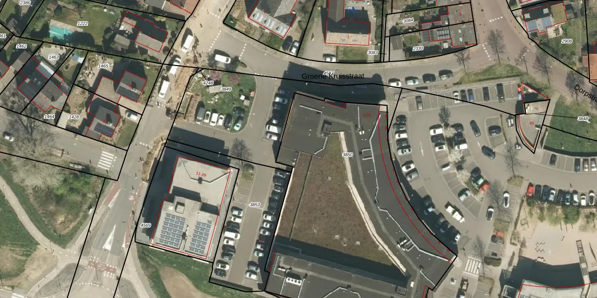 Het perceel waarop Groene Kruisstraat 48 staat heeft een oppervlakte van 3236 m². Dit is een zeer groot perceel. De perceeloppervlakte wordt geregistreerd door het Kadaster. Gedetailleerde informatie over de maten van dit perceel kunt u vinden in het rapport Kadastrale kaart met maatvoering van Groene Kruisstraat 48.