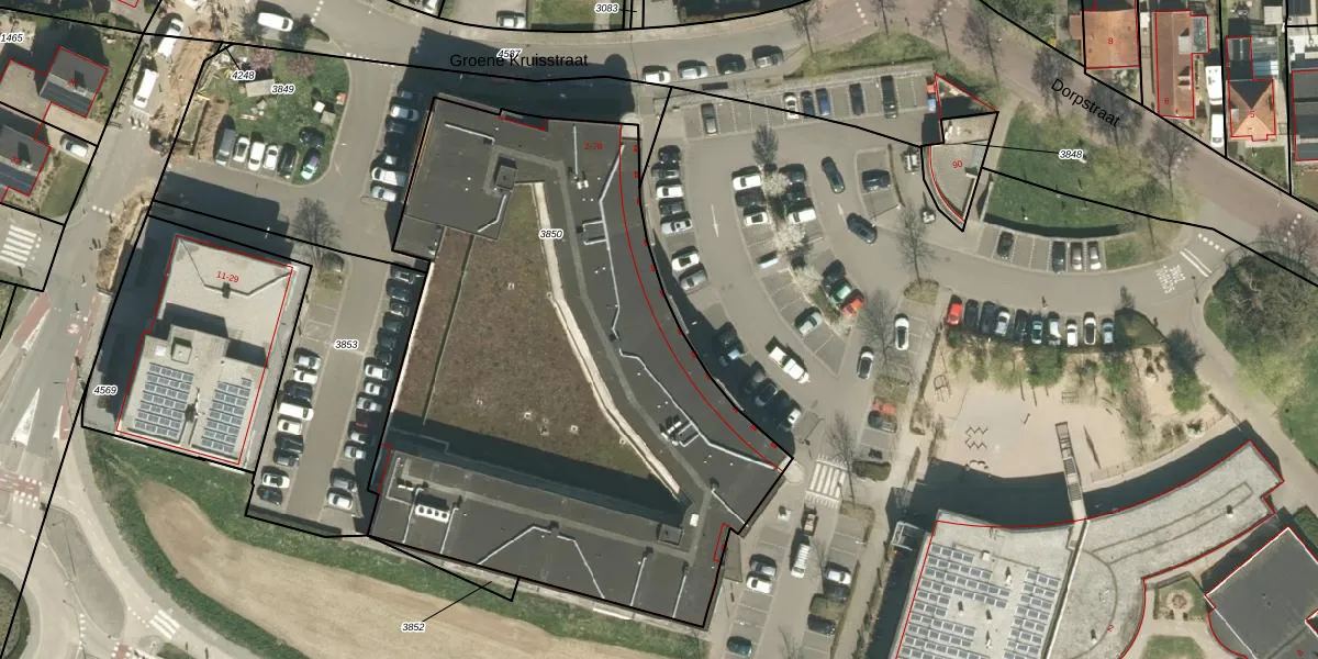 Het perceel waarop Groene Kruisstraat 8 staat heeft een oppervlakte van 3236 m². Dit is een zeer groot perceel. De perceeloppervlakte wordt geregistreerd door het Kadaster. Gedetailleerde informatie over de maten van dit perceel kunt u vinden in het rapport Kadastrale kaart met maatvoering van Groene Kruisstraat 8.