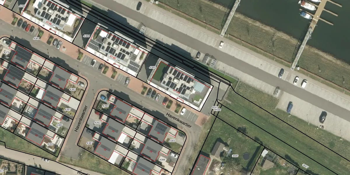 Het perceel waarop Havenkwartier 105 staat heeft een oppervlakte van 690 m². Dit is een groot perceel. De perceeloppervlakte wordt geregistreerd door het Kadaster. Gedetailleerde informatie over de maten van dit perceel kunt u vinden in het rapport Kadastrale kaart met maatvoering van Havenkwartier 105.