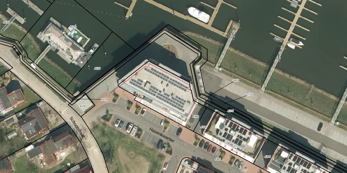 Het perceel waarop Havenkwartier 29 staat heeft een oppervlakte van 995 m². Dit is een groot perceel. De perceeloppervlakte wordt geregistreerd door het Kadaster. Gedetailleerde informatie over de maten van dit perceel kunt u vinden in het rapport Kadastrale kaart met maatvoering van Havenkwartier 29.