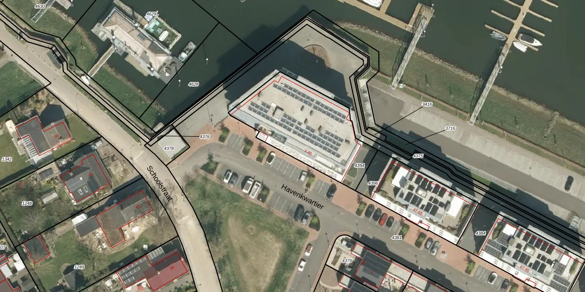 Havenkwartier 45 is gelegen op kadastraal perceel HTN02C4394. Deze kadastrale aanduiding is uniek en wordt gebruikt door het Kadaster om eigendomsrechten en andere zakelijke rechten vast te leggen. Het perceel maakt onderdeel uit van de kadastrale gemeente Herten.