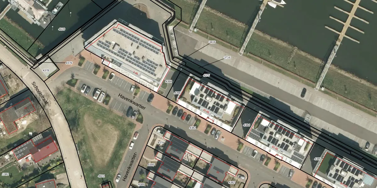Het perceel waarop Havenkwartier 59 staat heeft een oppervlakte van 635 m². Dit is een groot perceel. De perceeloppervlakte wordt geregistreerd door het Kadaster. Gedetailleerde informatie over de maten van dit perceel kunt u vinden in het rapport Kadastrale kaart met maatvoering van Havenkwartier 59.