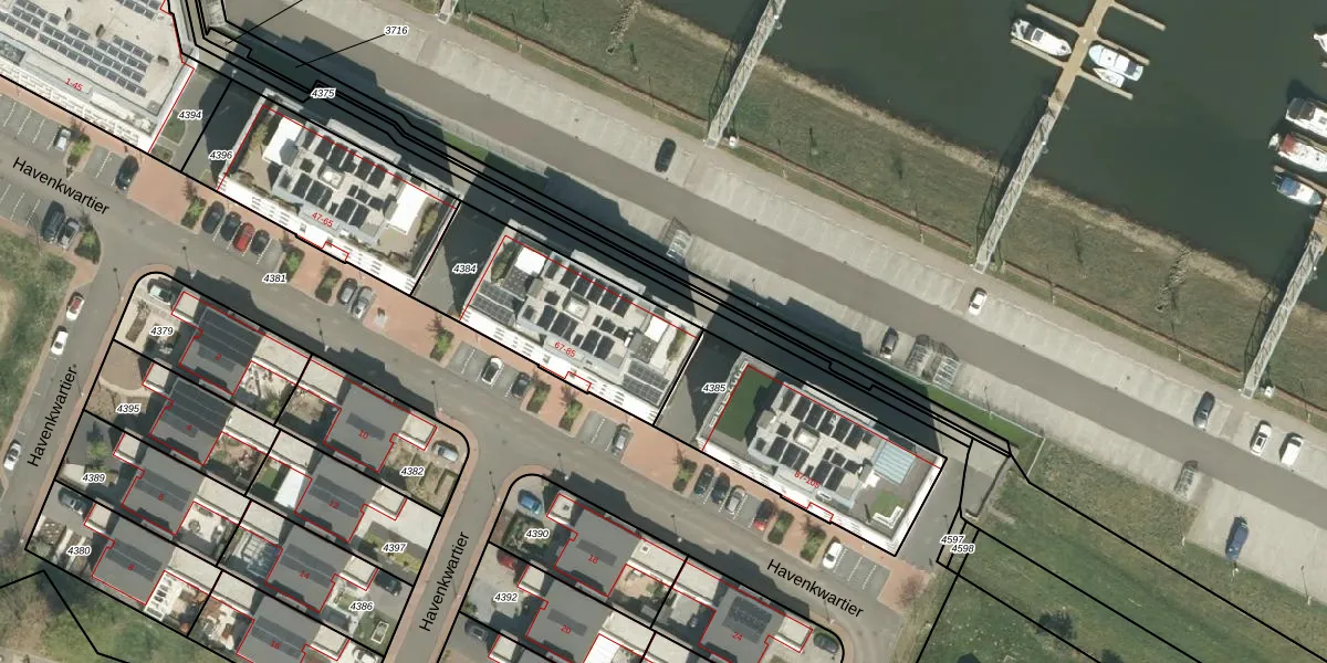 Het perceel waarop Havenkwartier 71 staat heeft een oppervlakte van 680 m². Dit is een groot perceel. De perceeloppervlakte wordt geregistreerd door het Kadaster. Gedetailleerde informatie over de maten van dit perceel kunt u vinden in het rapport Kadastrale kaart met maatvoering van Havenkwartier 71.