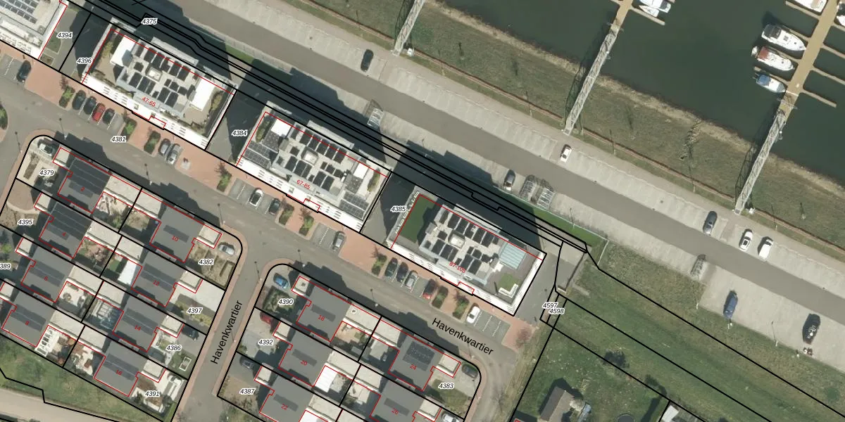 Havenkwartier 93 is gelegen op kadastraal perceel HTN02C4385. Deze kadastrale aanduiding is uniek en wordt gebruikt door het Kadaster om eigendomsrechten en andere zakelijke rechten vast te leggen. Het perceel maakt onderdeel uit van de kadastrale gemeente Herten.