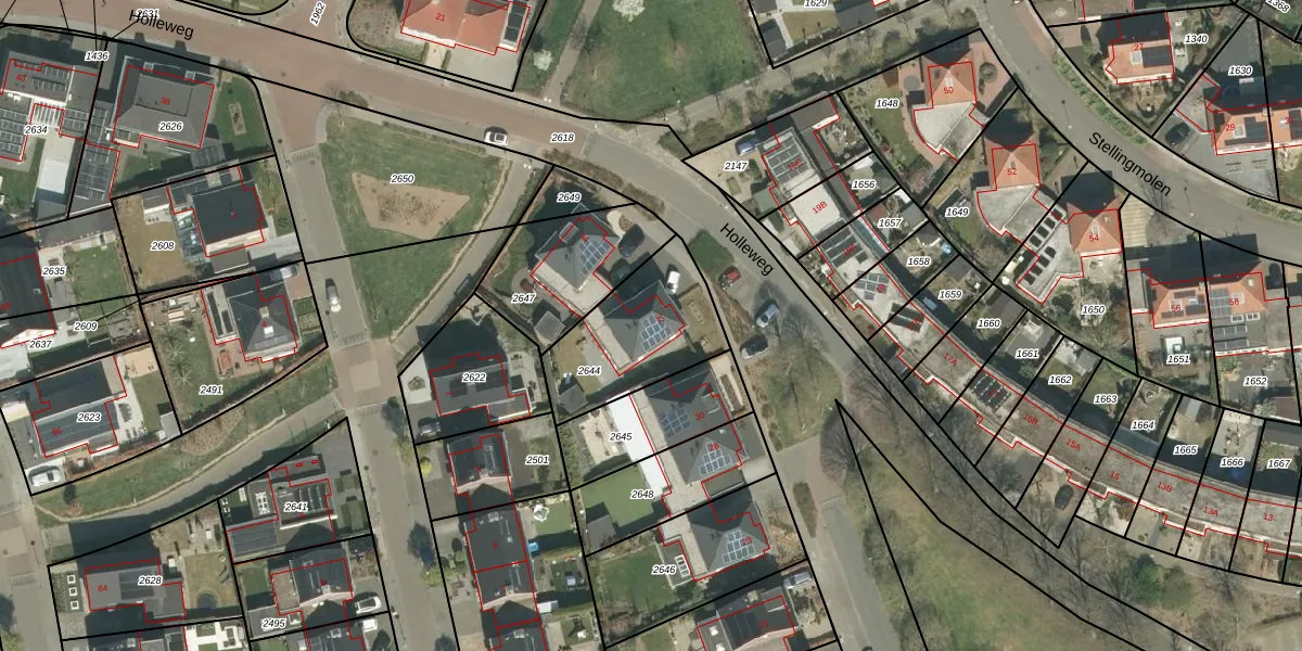Gebruik de zoekbalk of klik op een perceel voor informatie over de adressen binnen dit perceel.