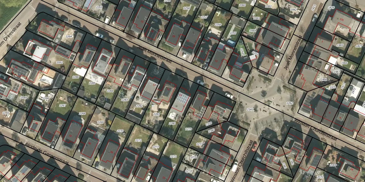 Het perceel waarop Jean Monnetstraat 13 staat heeft een oppervlakte van 307 m². Dit is een groot perceel. De perceeloppervlakte wordt geregistreerd door het Kadaster. Gedetailleerde informatie over de maten van dit perceel kunt u vinden in het rapport Kadastrale kaart met maatvoering van Jean Monnetstraat 13.