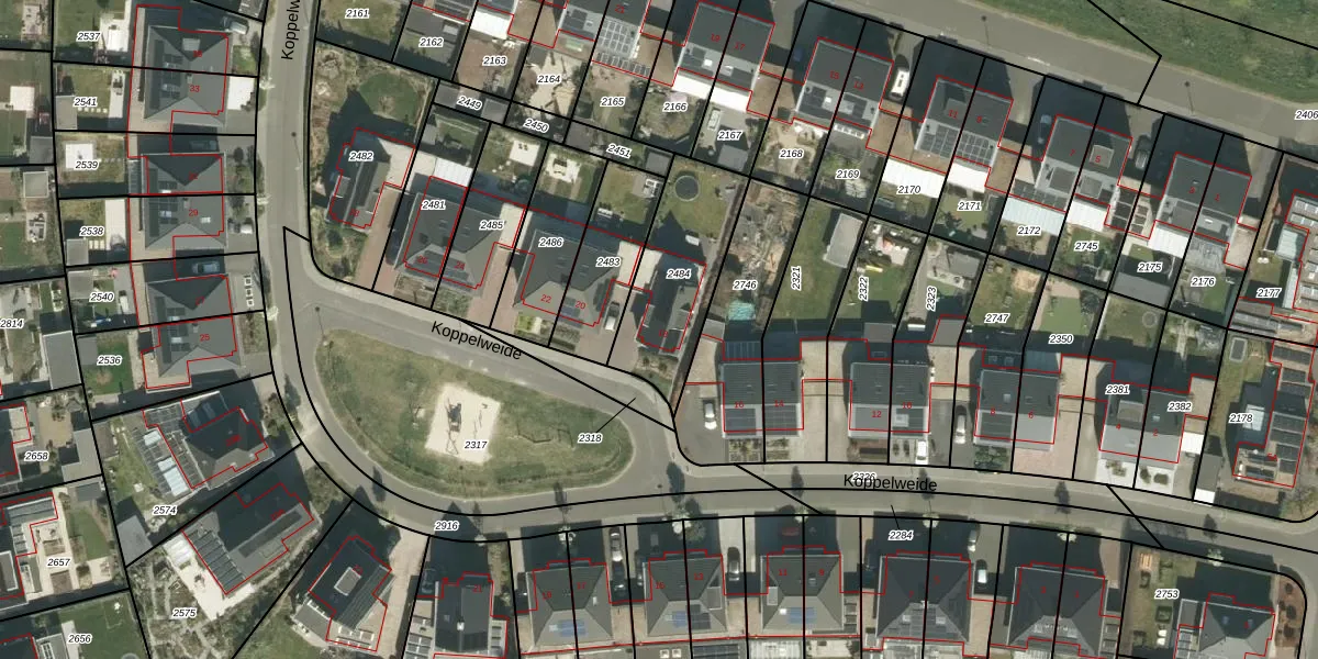 Koppelweide 18 is gelegen op kadastraal perceel HTN02B2484. Deze kadastrale aanduiding is uniek en wordt gebruikt door het Kadaster om eigendomsrechten en andere zakelijke rechten vast te leggen. Het perceel maakt onderdeel uit van de kadastrale gemeente Herten.