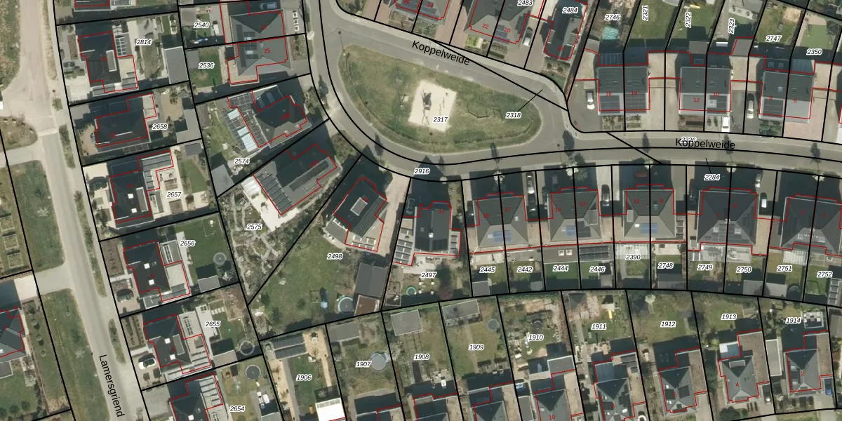 Het perceel waarop Koppelweide 21 staat heeft een oppervlakte van 493 m². Dit is een groot perceel. De perceeloppervlakte wordt geregistreerd door het Kadaster. Gedetailleerde informatie over de maten van dit perceel kunt u vinden in het rapport Kadastrale kaart met maatvoering van Koppelweide 21.