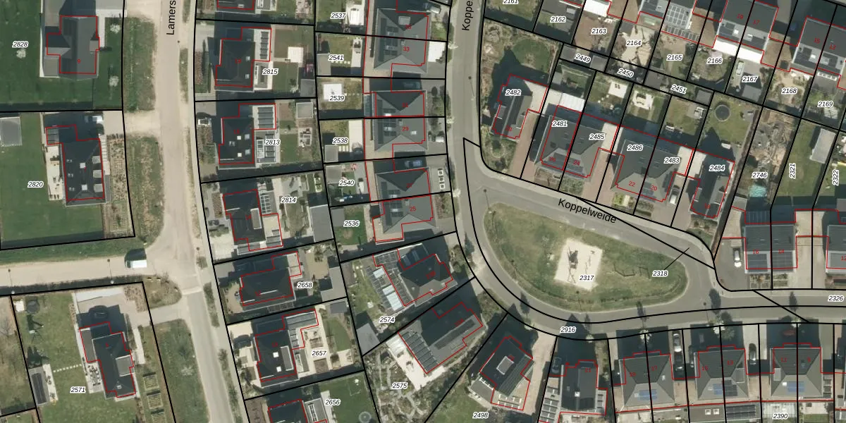 Koppelweide 25 is gelegen op kadastraal perceel HTN02B2536. Deze kadastrale aanduiding is uniek en wordt gebruikt door het Kadaster om eigendomsrechten en andere zakelijke rechten vast te leggen. Het perceel maakt onderdeel uit van de kadastrale gemeente Herten.