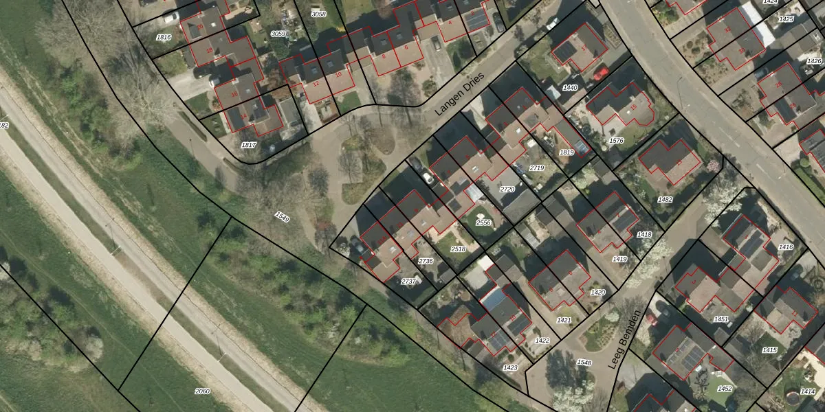 Langen Dries 9 is gelegen op kadastraal perceel HTN02B2518. Deze kadastrale aanduiding is uniek en wordt gebruikt door het Kadaster om eigendomsrechten en andere zakelijke rechten vast te leggen. Het perceel maakt onderdeel uit van de kadastrale gemeente Herten.
