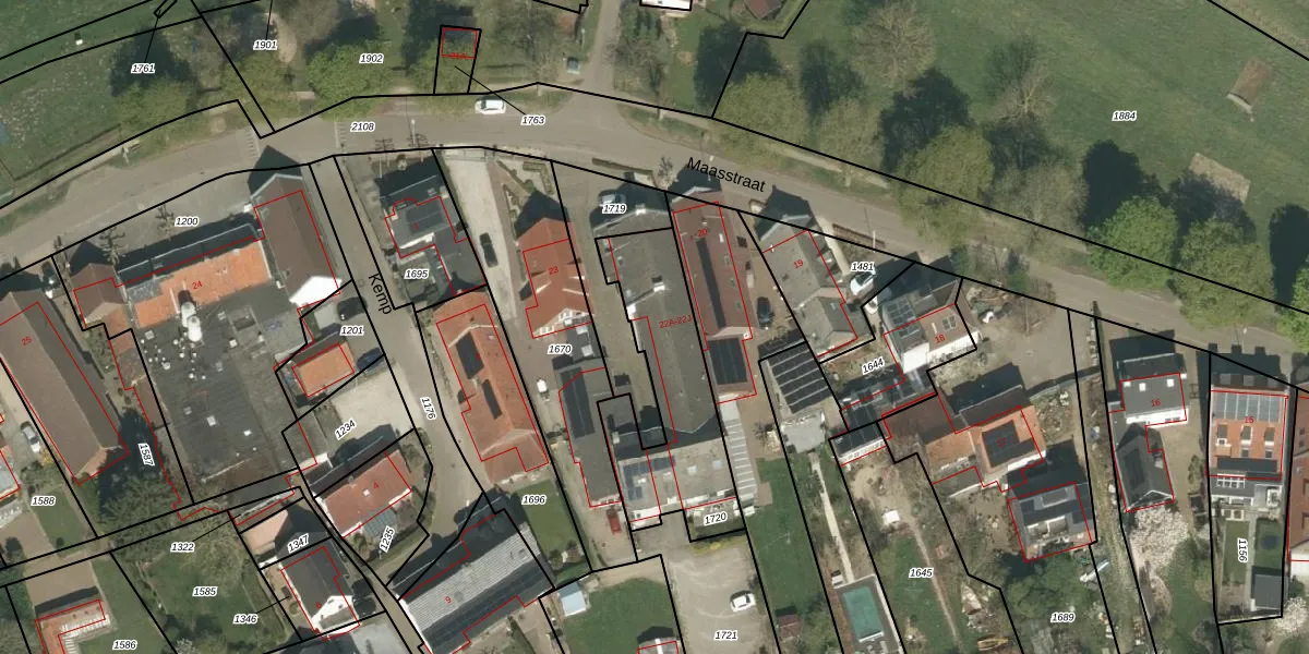 Maasstraat 22-B is gelegen op kadastraal perceel HTN02B1720. Deze kadastrale aanduiding is uniek en wordt gebruikt door het Kadaster om eigendomsrechten en andere zakelijke rechten vast te leggen. Het perceel maakt onderdeel uit van de kadastrale gemeente Herten.