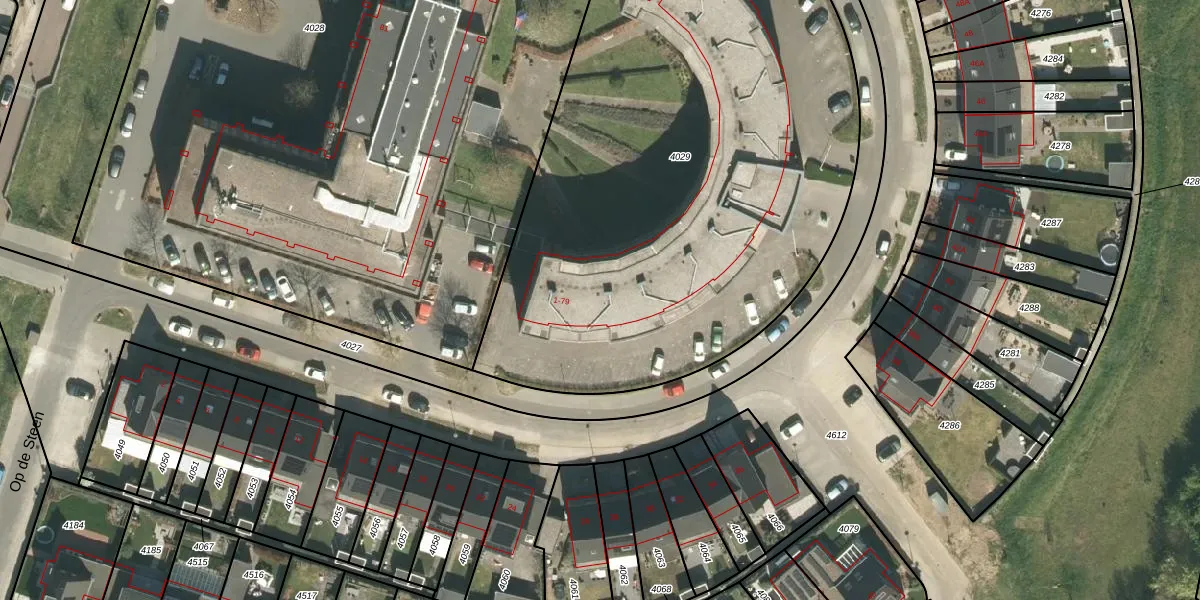 Het perceel waarop Op de Steen 39 staat heeft een oppervlakte van 3755 m². Dit is een zeer groot perceel. De perceeloppervlakte wordt geregistreerd door het Kadaster. Gedetailleerde informatie over de maten van dit perceel kunt u vinden in het rapport Kadastrale kaart met maatvoering van Op de Steen 39.