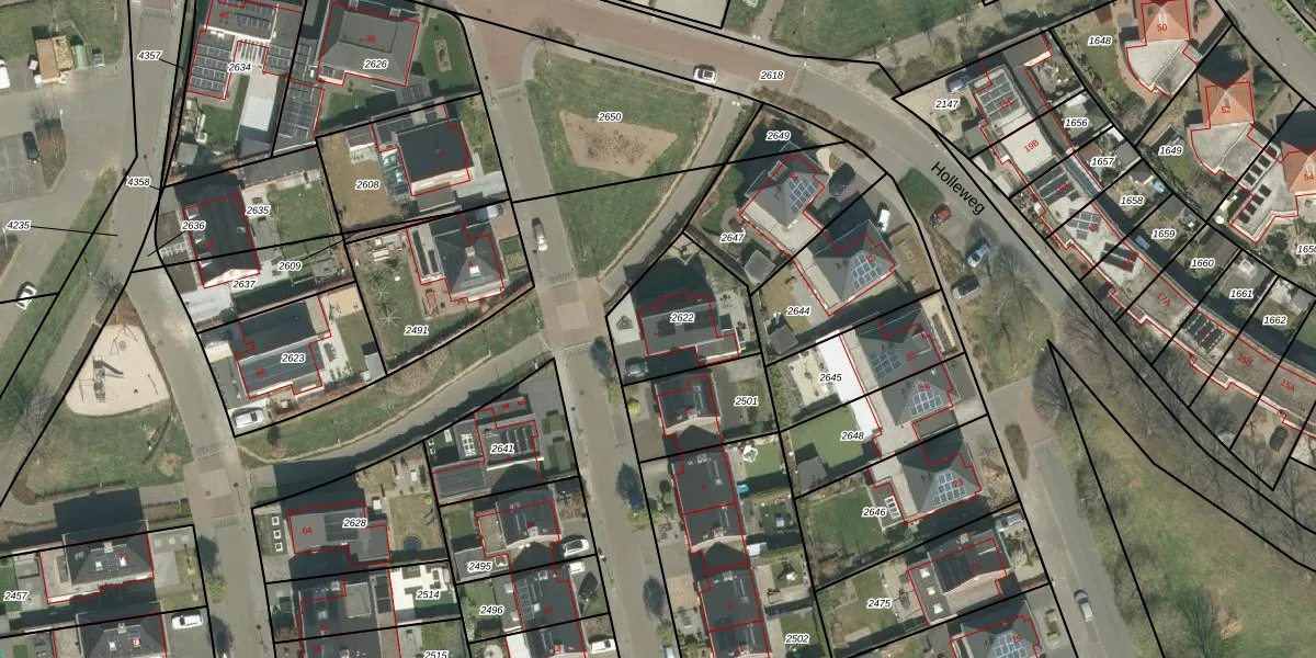 Gebruik de zoekbalk of klik op een perceel voor informatie over de adressen binnen dit perceel.