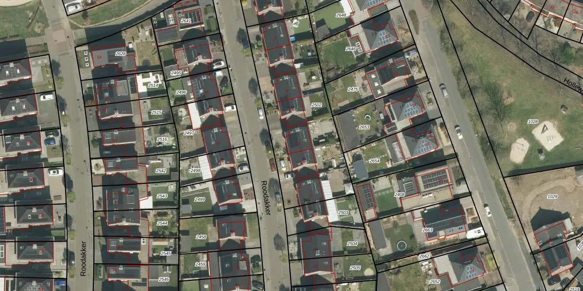 Roodakker 13 is gelegen op kadastraal perceel HTN02D2502. Deze kadastrale aanduiding is uniek en wordt gebruikt door het Kadaster om eigendomsrechten en andere zakelijke rechten vast te leggen. Het perceel maakt onderdeel uit van de kadastrale gemeente Herten.