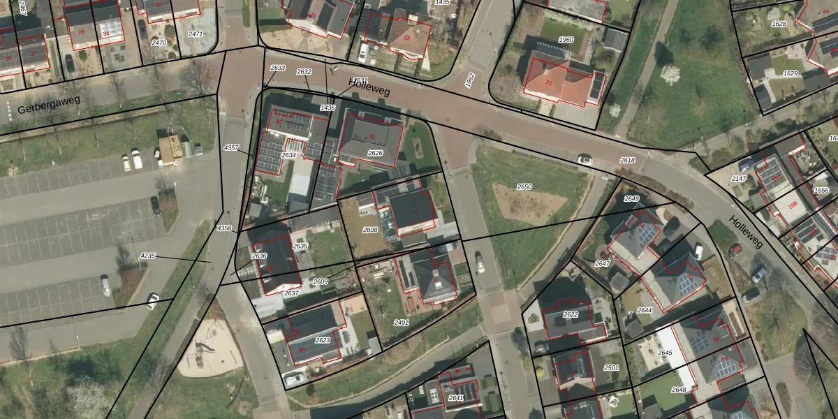Het adres is gelegen op perceel 2608 in de sectie D en de kadastrale gemeente Herten. De kadastrale aanduiding is aldus HTN02-D-2608. Het perceel is 422 m² groot. Dat is kleiner dan de gemiddelde perceeloppervlakte in Herten, dat op 1517,45 m² ligt. De grootste perceeloppervlakte in de kadastrale gemeente is 1,08 km². De kleinste oppervlakte bedraagt 0 m². Dit is het enige adres dat aanwezig is op het perceel. In de Basisregistratie Kadaster (BRK) werden de grenzen van het perceel geregistreerd op 08-03-2017.