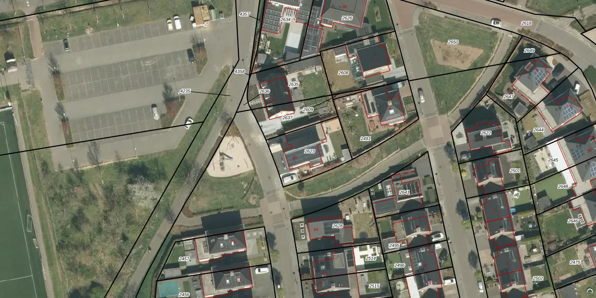 Het adres is gelegen op perceel 2623 in de sectie D en de kadastrale gemeente Herten. De kadastrale aanduiding is aldus HTN02-D-2623. Het perceel is 411 m² groot. Dat is kleiner dan de gemiddelde perceeloppervlakte in Herten, dat op 1517,45 m² ligt. De grootste perceeloppervlakte in de kadastrale gemeente is 1,08 km². De kleinste oppervlakte bedraagt 0 m². Dit is het enige adres dat aanwezig is op het perceel. In de Basisregistratie Kadaster (BRK) werden de grenzen van het perceel geregistreerd op 08-03-2017.