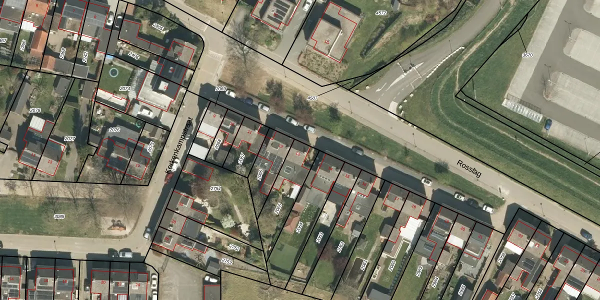 Het perceel waarop Rosslag 13 staat heeft een oppervlakte van 319 m². Dit is een groot perceel. De perceeloppervlakte wordt geregistreerd door het Kadaster. Gedetailleerde informatie over de maten van dit perceel kunt u vinden in het rapport Kadastrale kaart met maatvoering van Rosslag 13.