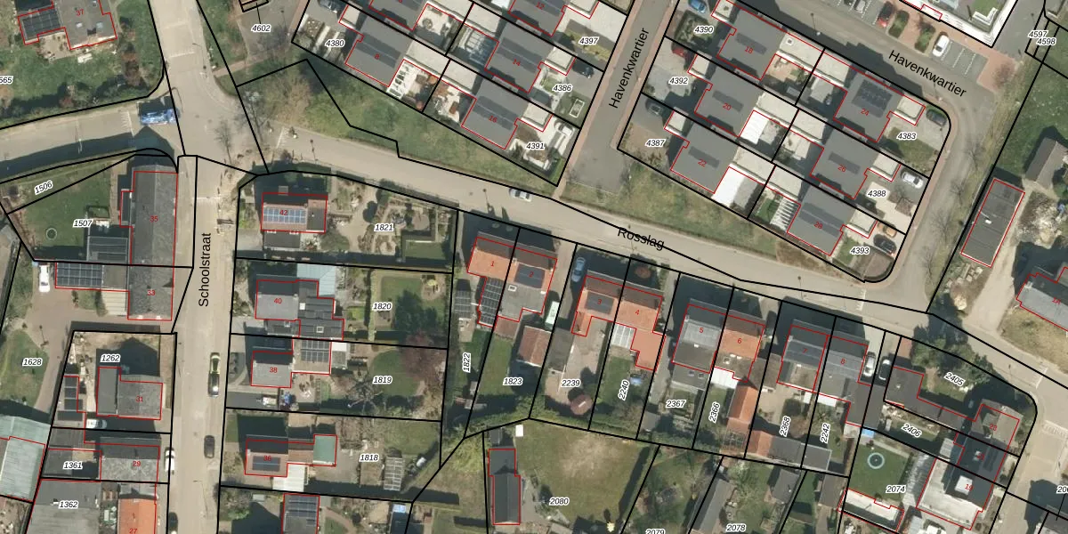 Het perceel waarop Rosslag 2 staat heeft een oppervlakte van 375 m². Dit is een groot perceel. De perceeloppervlakte wordt geregistreerd door het Kadaster. Gedetailleerde informatie over de maten van dit perceel kunt u vinden in het rapport Kadastrale kaart met maatvoering van Rosslag 2.