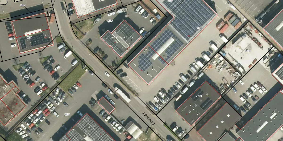 Het perceel waarop Solvayweg 4-A staat heeft een oppervlakte van 4024 m². Dit is een zeer groot perceel. De perceeloppervlakte wordt geregistreerd door het Kadaster. Gedetailleerde informatie over de maten van dit perceel kunt u vinden in het rapport Kadastrale kaart met maatvoering van Solvayweg 4-A.