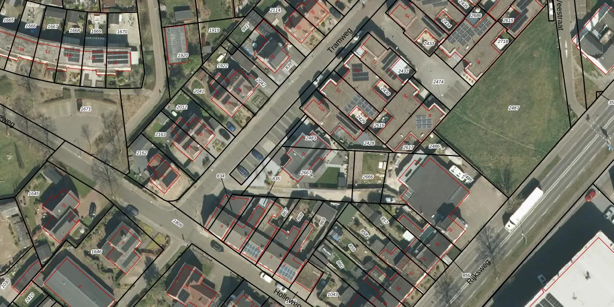 Tramweg 15 is gelegen op kadastraal perceel HTN02D2667. Deze kadastrale aanduiding is uniek en wordt gebruikt door het Kadaster om eigendomsrechten en andere zakelijke rechten vast te leggen. Het perceel maakt onderdeel uit van de kadastrale gemeente Herten.