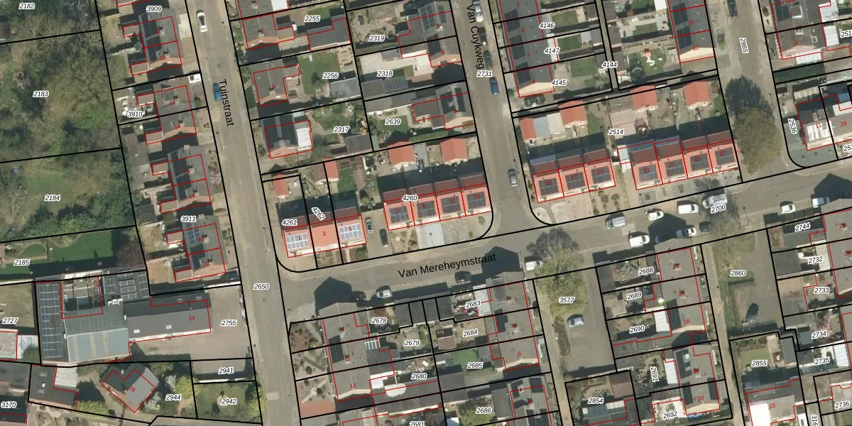 Van Mereheymstraat 9 is gelegen op kadastraal perceel HTN02C4260. Deze kadastrale aanduiding is uniek en wordt gebruikt door het Kadaster om eigendomsrechten en andere zakelijke rechten vast te leggen. Het perceel maakt onderdeel uit van de kadastrale gemeente Herten.