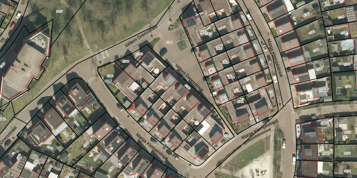 Het perceel waarop Willem Dreesstraat 29 staat heeft een oppervlakte van 591 m². Dit is een groot perceel. De perceeloppervlakte wordt geregistreerd door het Kadaster. Gedetailleerde informatie over de maten van dit perceel kunt u vinden in het rapport Kadastrale kaart met maatvoering van Willem Dreesstraat 29.