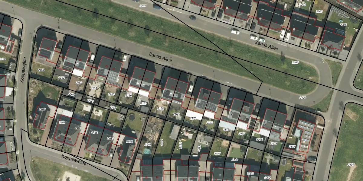 Gebruik de zoekbalk of klik op een perceel voor informatie over de adressen binnen dit perceel.