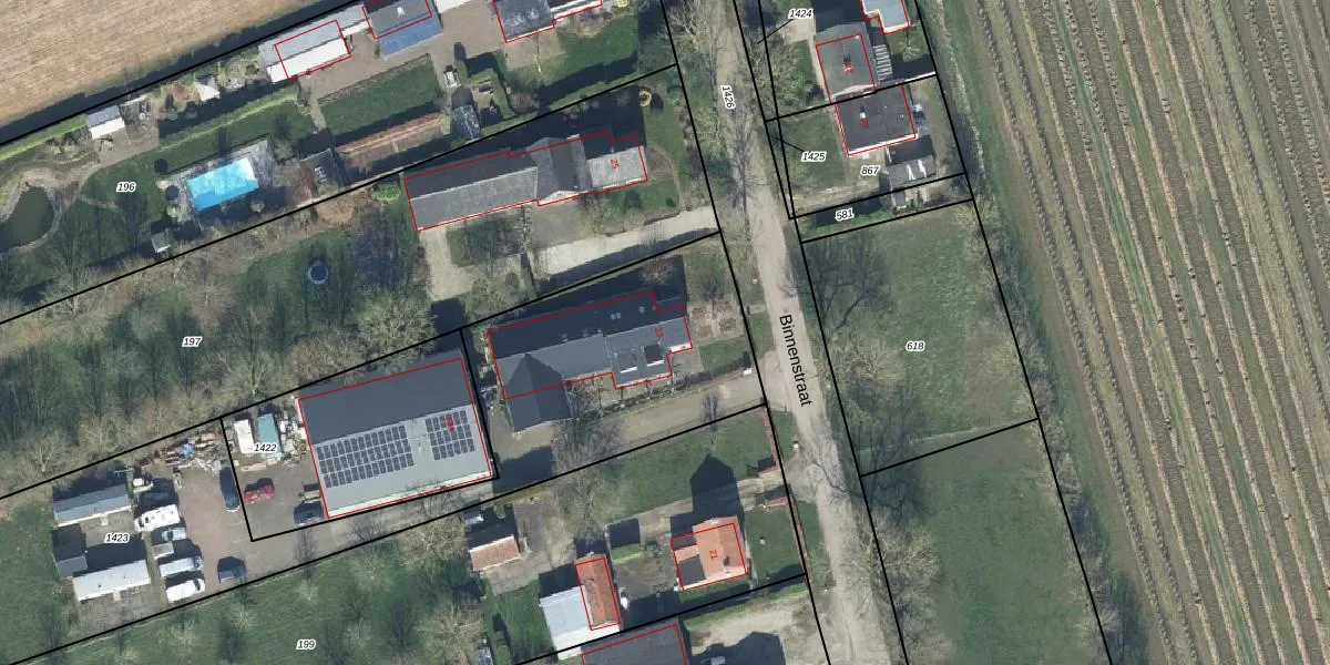 Het perceel waarop Binnenstraat 23 staat heeft een oppervlakte van 3130 m². Dit is een zeer groot perceel. De perceeloppervlakte wordt geregistreerd door het Kadaster. Gedetailleerde informatie over de maten van dit perceel kunt u vinden in het rapport Kadastrale kaart met maatvoering van Binnenstraat 23.