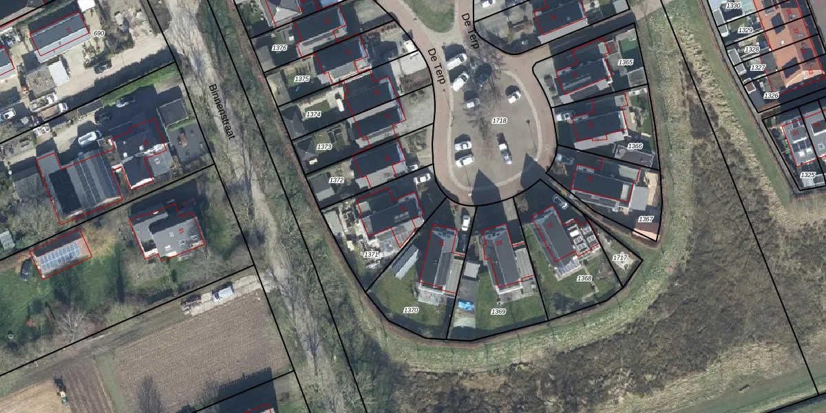 Het perceel waarop De Terp 33 staat heeft een oppervlakte van 452 m². Dit is een groot perceel. De perceeloppervlakte wordt geregistreerd door het Kadaster. Gedetailleerde informatie over de maten van dit perceel kunt u vinden in het rapport Kadastrale kaart met maatvoering van De Terp 33.