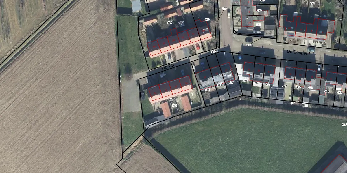 Het perceel waarop De Tip 13 staat heeft een oppervlakte van 945 m². Dit is een groot perceel. De perceeloppervlakte wordt geregistreerd door het Kadaster. Gedetailleerde informatie over de maten van dit perceel kunt u vinden in het rapport Kadastrale kaart met maatvoering van De Tip 13.