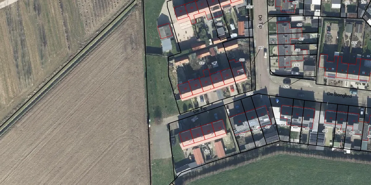 Het perceel waarop De Tip 18 staat heeft een oppervlakte van 2075 m². Dit is een zeer groot perceel. De perceeloppervlakte wordt geregistreerd door het Kadaster. Gedetailleerde informatie over de maten van dit perceel kunt u vinden in het rapport Kadastrale kaart met maatvoering van De Tip 18.
