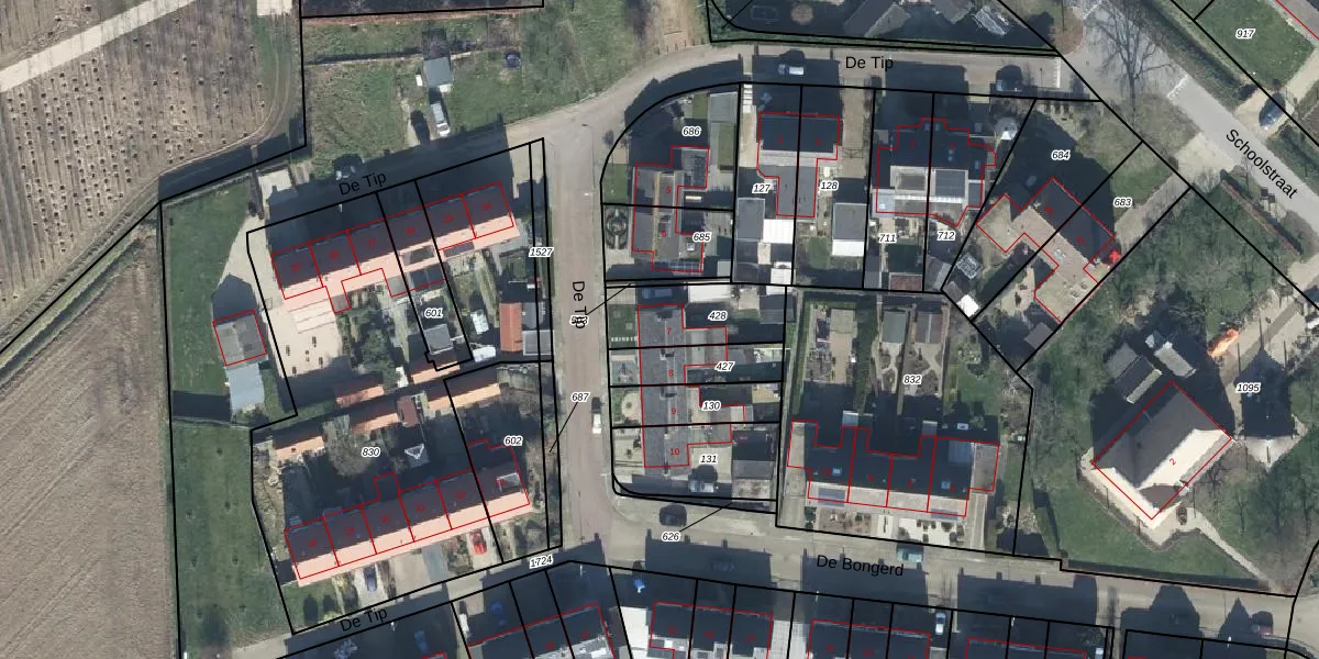 Het perceel waarop De Tip 7 staat heeft een oppervlakte van 255 m². Dit is een middelgroot perceel. De perceeloppervlakte wordt geregistreerd door het Kadaster. Gedetailleerde informatie over de maten van dit perceel kunt u vinden in het rapport Kadastrale kaart met maatvoering van De Tip 7.