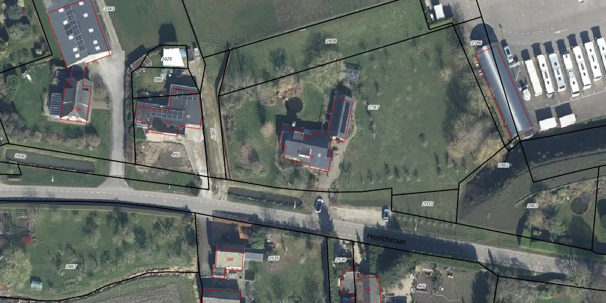 Het perceel waarop Hoofdstraat 175-a staat heeft een oppervlakte van 3715 m². Dit is een zeer groot perceel. De perceeloppervlakte wordt geregistreerd door het Kadaster. Gedetailleerde informatie over de maten van dit perceel kunt u vinden in het rapport Kadastrale kaart met maatvoering van Hoofdstraat 175-a.