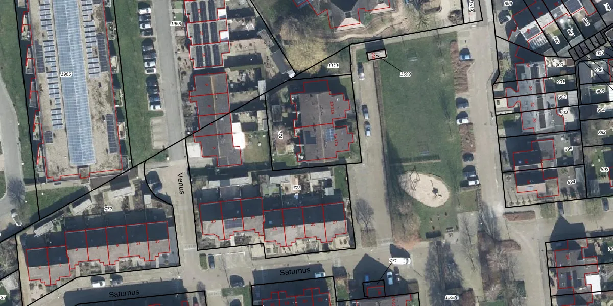 Het perceel waarop Jupiterpark 15-a staat heeft een oppervlakte van 822 m². Dit is een groot perceel. De perceeloppervlakte wordt geregistreerd door het Kadaster. Gedetailleerde informatie over de maten van dit perceel kunt u vinden in het rapport Kadastrale kaart met maatvoering van Jupiterpark 15-a.