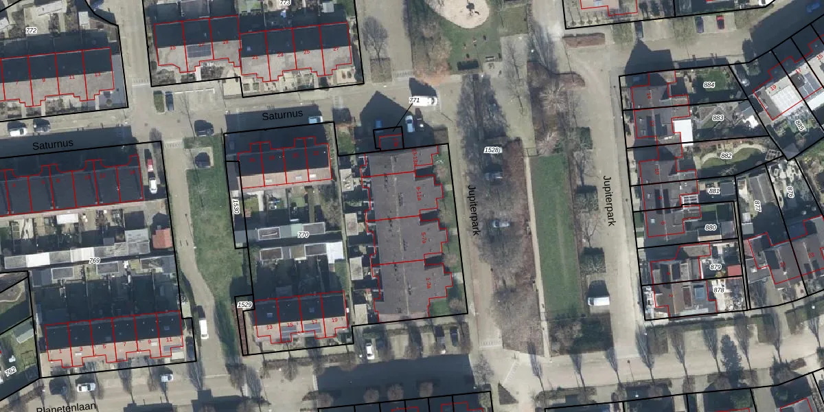 Jupiterpark 9 is gelegen op kadastraal perceel VBG02H770. Deze kadastrale aanduiding is uniek en wordt gebruikt door het Kadaster om eigendomsrechten en andere zakelijke rechten vast te leggen. Het perceel maakt onderdeel uit van de kadastrale gemeente Valburg.