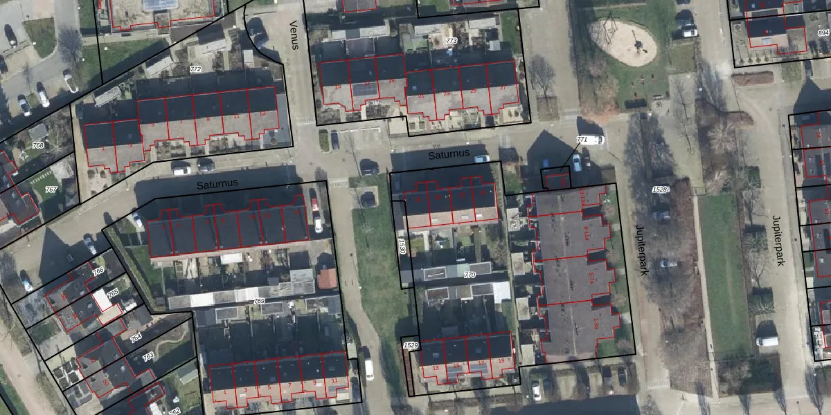 Het perceel waarop Saturnus 16 staat heeft een oppervlakte van 2460 m². Dit is een zeer groot perceel. De perceeloppervlakte wordt geregistreerd door het Kadaster. Gedetailleerde informatie over de maten van dit perceel kunt u vinden in het rapport Kadastrale kaart met maatvoering van Saturnus 16.