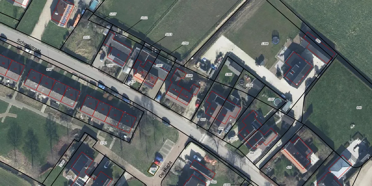 Het perceel waarop Schoolstraat 12 staat heeft een oppervlakte van 545 m². Dit is een groot perceel. De perceeloppervlakte wordt geregistreerd door het Kadaster. Gedetailleerde informatie over de maten van dit perceel kunt u vinden in het rapport Kadastrale kaart met maatvoering van Schoolstraat 12.