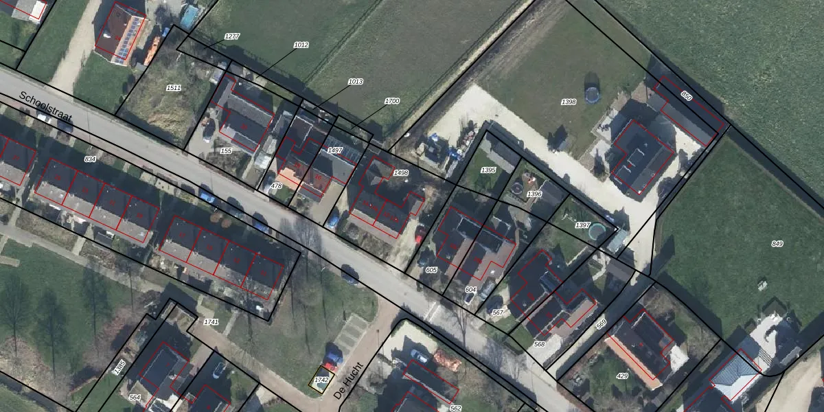 Het perceel waarop Schoolstraat 12-b staat heeft een oppervlakte van 545 m². Dit is een groot perceel. De perceeloppervlakte wordt geregistreerd door het Kadaster. Gedetailleerde informatie over de maten van dit perceel kunt u vinden in het rapport Kadastrale kaart met maatvoering van Schoolstraat 12-b.